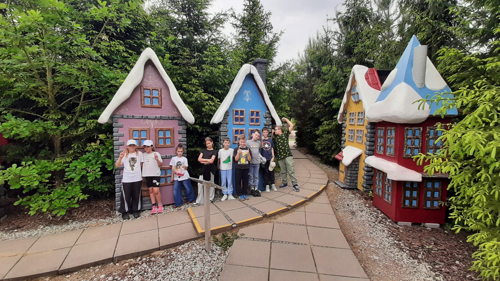Czekały tam na nich liczne atrakcje. Spacerując ścieżką zawieszoną w koronach drzew, uczniowie podziwiali świat z zupełnie innej perspektywy. Duże wrażenie zrobiło też mini zoo, w którym poznały ciekawych mieszkańców parku. Z kolei gigantyczne owady i prehistoryczne zwierzęta okazały się niemałym hitem. Zachwyciły ich też miniatury najsłynniejszych budowli świata. Nie zabrakło także magicznego świata bajek, gdzie spotkały bohaterów znanych i lubianych opowieści. Zabawa w parku linowym, labiryncie, wspinaczka na ścianki i zjazdy na pontonach sprawiły mnóstwo radości i śmiechu. Dzieci miały czas na zjedzenie pysznego obiadu, lodów i kupienie ciekawych pamiątek. Uczestniczyły w ciekawych warsztatach, gdzie wykazały się sporą wiedzą przyrodniczą i umiejętnościami. Niemałą atrakcją, w której śmiechu i szaleństwa nie było końca, okazał się świetnie wyposażony plac zabaw z licznymi dmuchańcami i zjeżdżalniami.