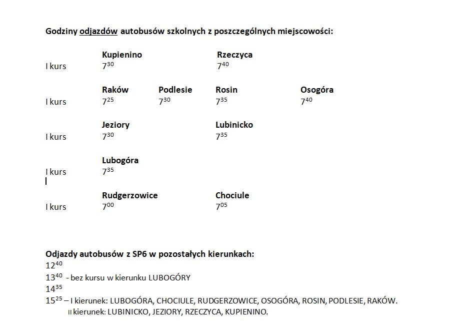 Godziny odjazdów autobusów szkolnych z poszczególnych miejscowości od dnia 2 września 2025 r.