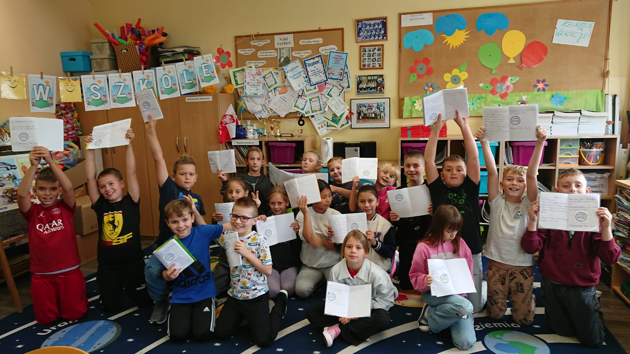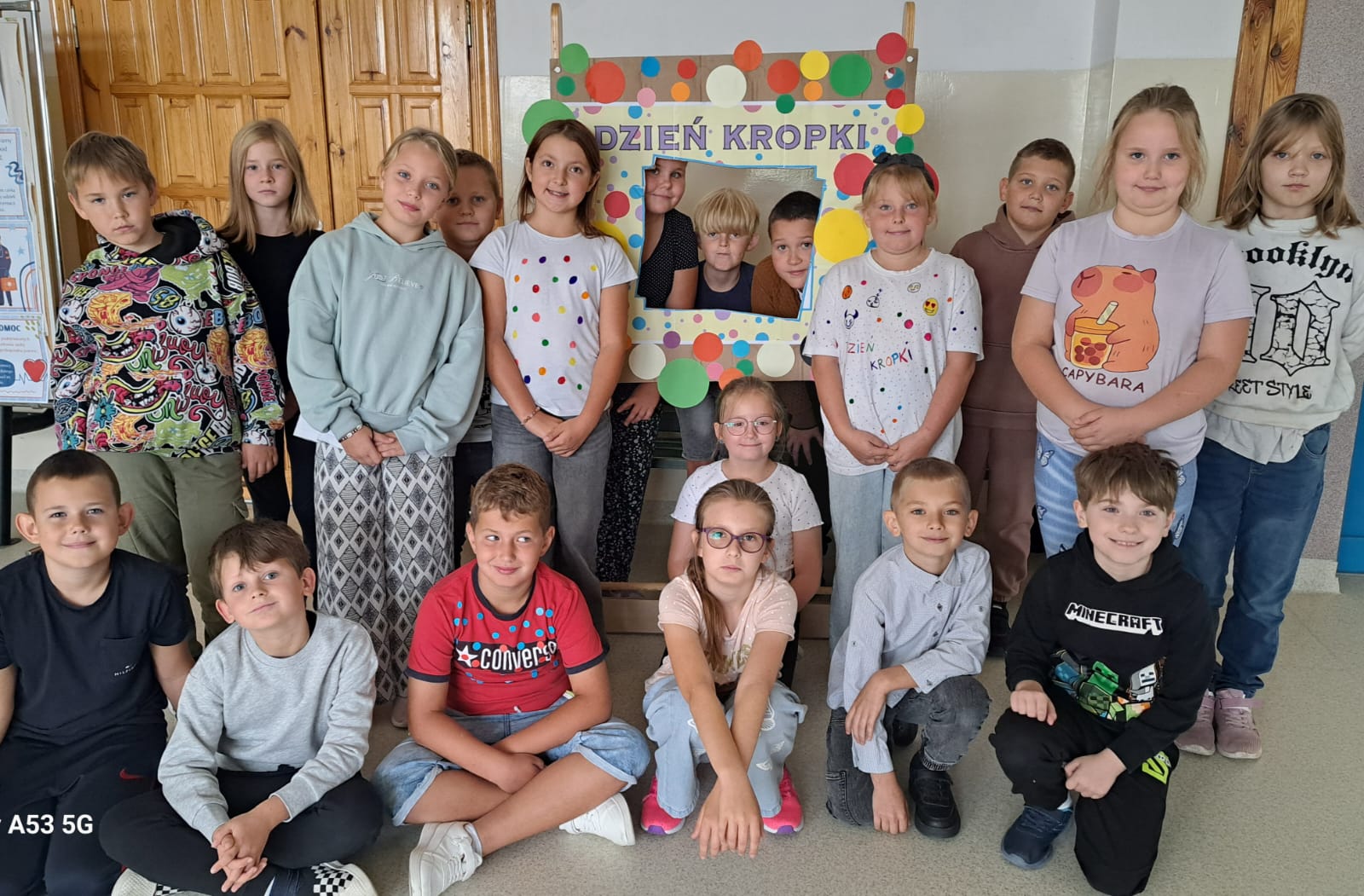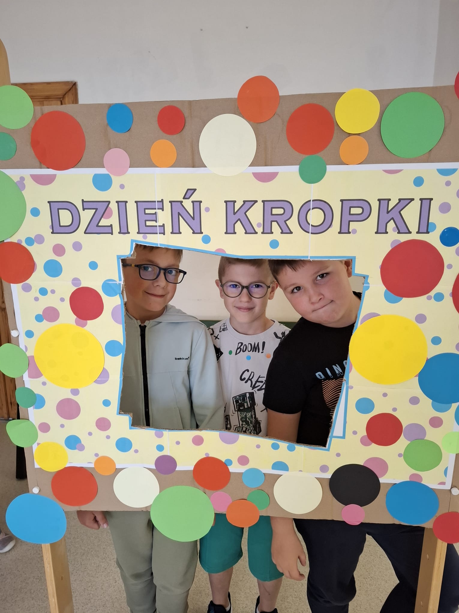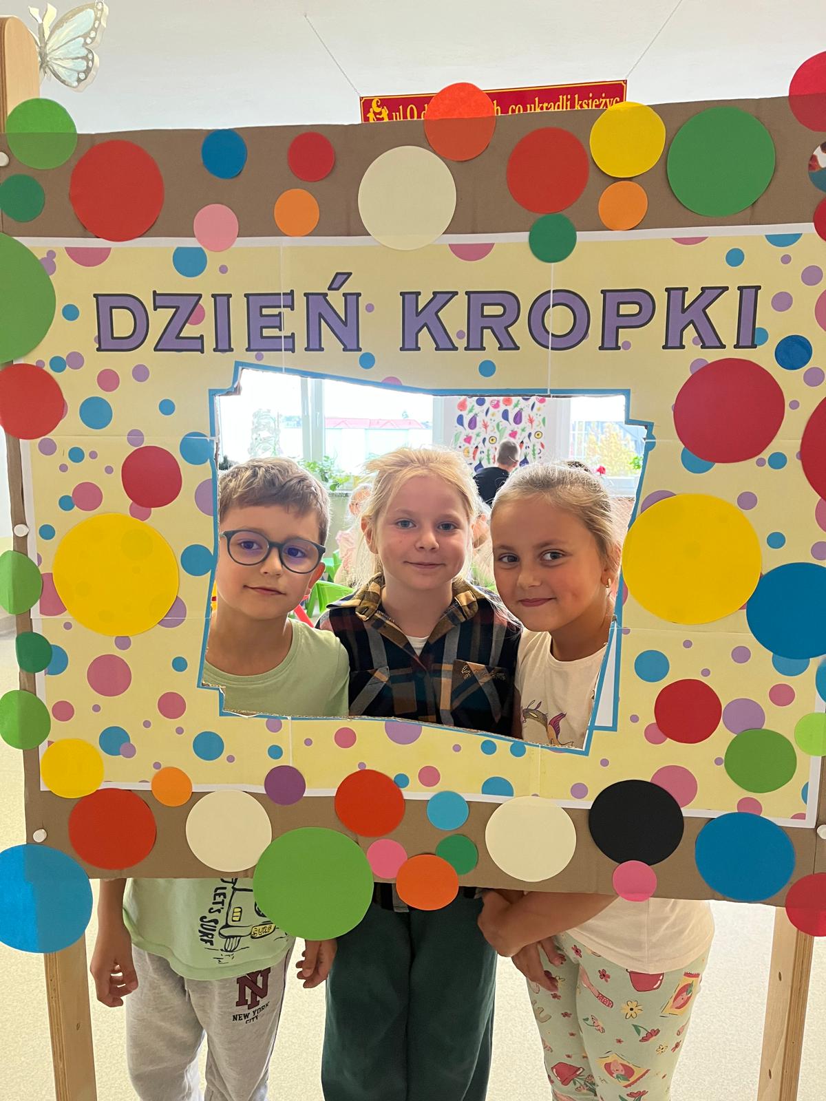 15 września w naszej szkole obchodziliśmy Międzynarodowy Dzień Kropki – święto kreatywności, odwagi i zabawy. Uczniowie klas młodszych ze swoimi wychowawcami oraz podczas pobytu w świetlicy szkolnej wzięli udział w zajęciach według scenariusza przygotowanego przez opiekunów Małego Samorządu (p. A.Skrzypek-Zdziennicka, p. M.Suchta). Odbyły się gry i zabawy ruchowe z kropkami. Dzieci wysłuchały także opowiadania o Vashti, małej dziewczynce, która odkryła swój ukryty talent. Następnie uczniowie tworzyli niesamowite prace plastyczne. Nie zabrakło również kropkowej fotobudki, która cieszyła się ogromnym zainteresowaniem.