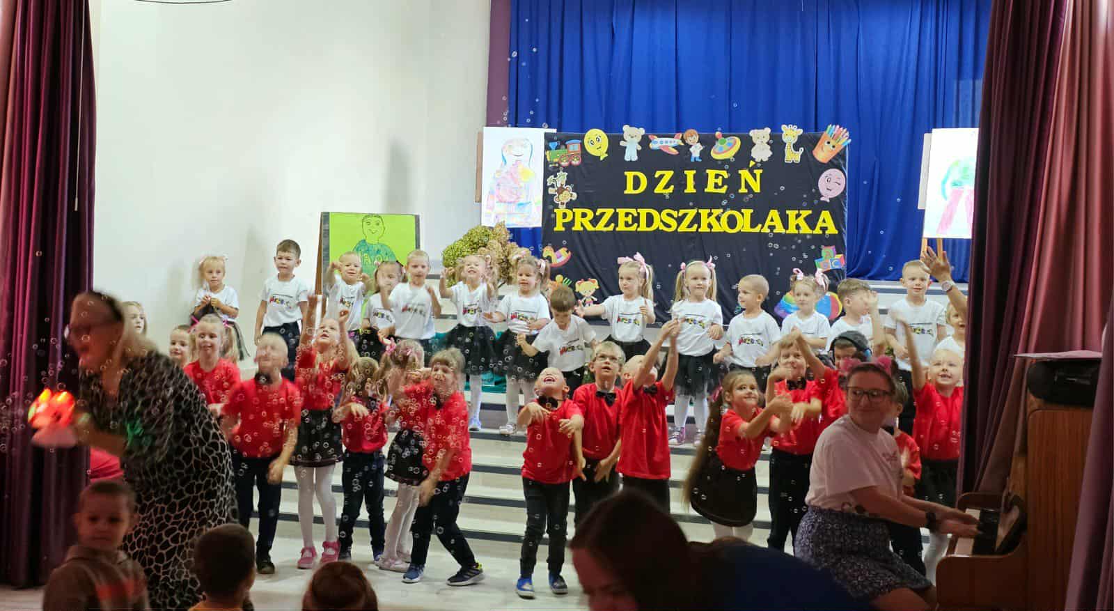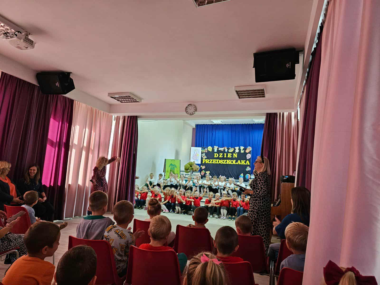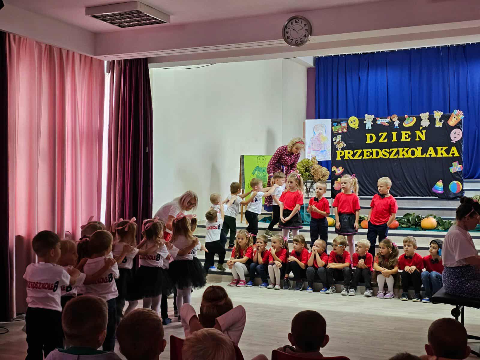 Wszystkie grupy przedszkolne spotkały się w auli szkolnej na ,której odbyło się przedstawienie przygotowane przez grupę ,,Tropiciele” i ,,Poszukiwacze”. Dzieci zaprezentowały swoje umiejętności artystyczne podczas tańców i śpiewów. Odbył się również quiz wiedzy o tematyce przedszkolnej, który cieszył się dużym zainteresowaniem. Na każde dziecko czekała, w tym dniu niespodzianka ukryta w sali.