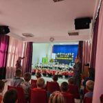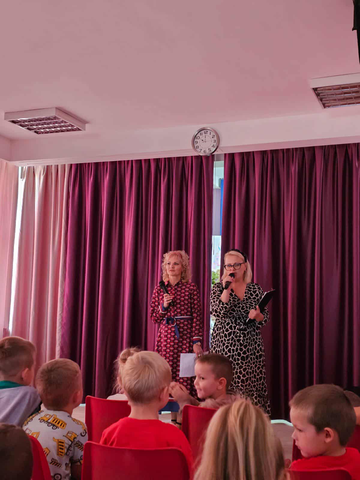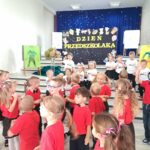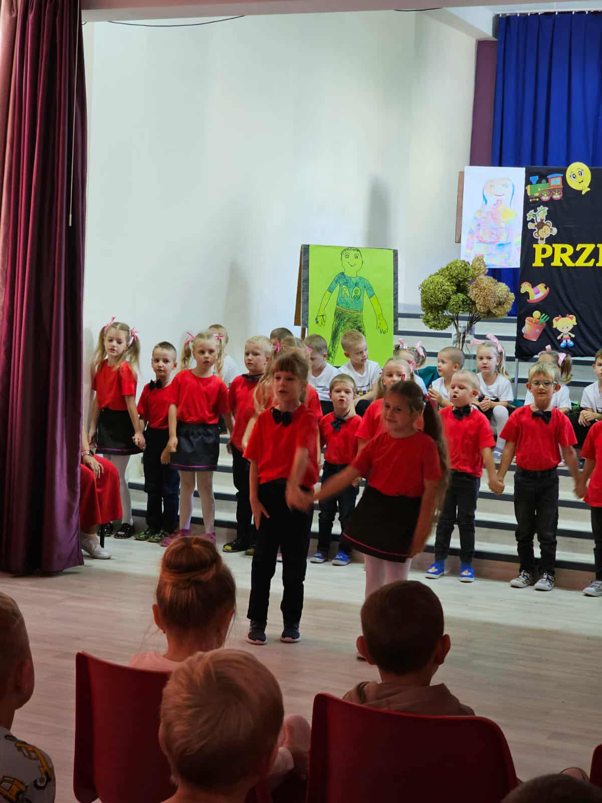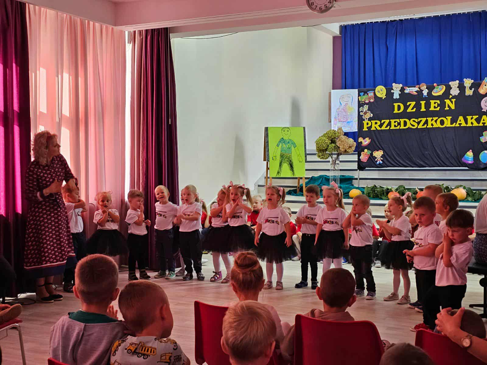 Wszystkie grupy przedszkolne spotkały się w auli szkolnej na ,której odbyło się przedstawienie przygotowane przez grupę ,,Tropiciele” i ,,Poszukiwacze”. Dzieci zaprezentowały swoje umiejętności artystyczne podczas tańców i śpiewów. Odbył się również quiz wiedzy o tematyce przedszkolnej, który cieszył się dużym zainteresowaniem. Na każde dziecko czekała, w tym dniu niespodzianka ukryta w sali.