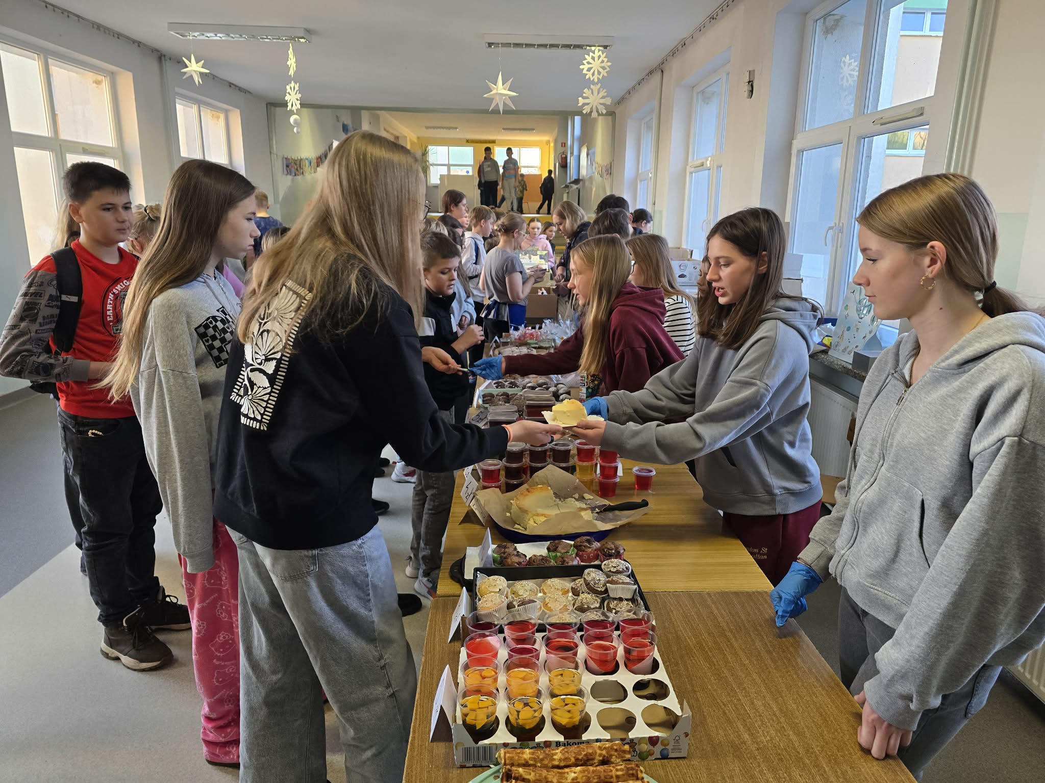 – kiermasz ciasta, słodkości oraz rękodzieła (mydełka, świeczki, ozdoby),