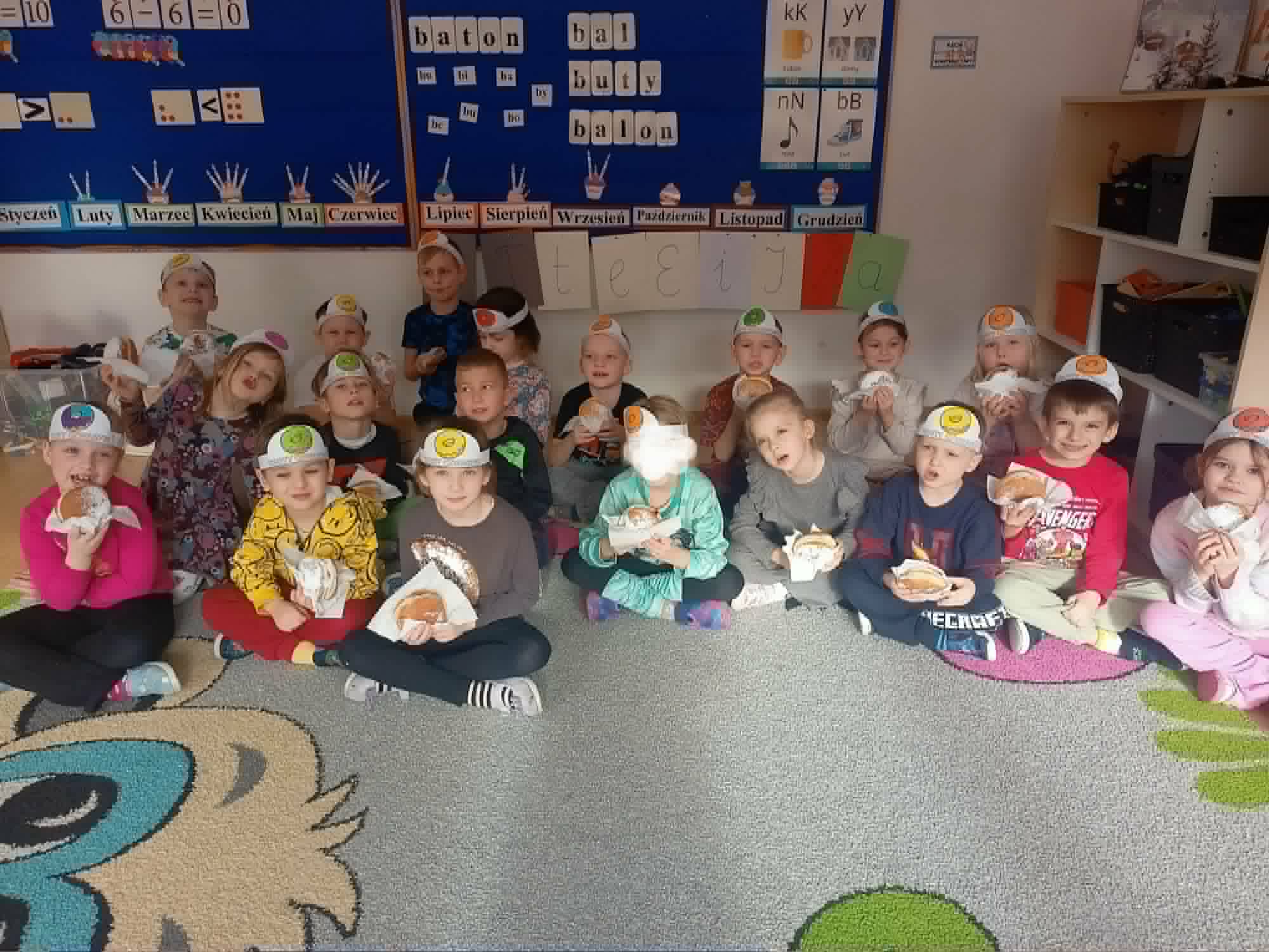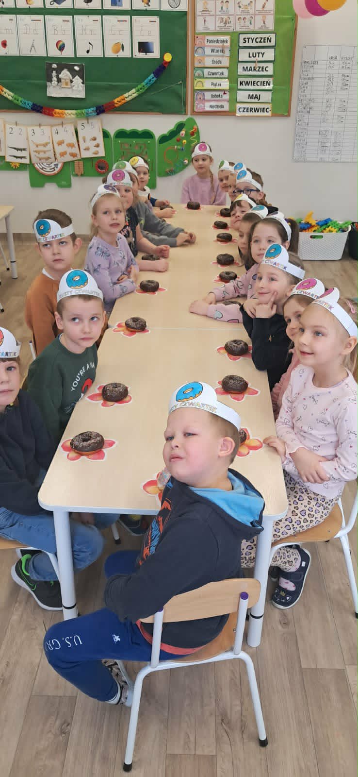 Nie zabrakło oczywiście degustacji pysznych pączków, które wywołały mnóstwo uśmiechów na twarzach naszych przedszkolaków. Były także zabawy tematyczne, prace plastyczne oraz wspólne świętowanie w radosnej atmosferze.